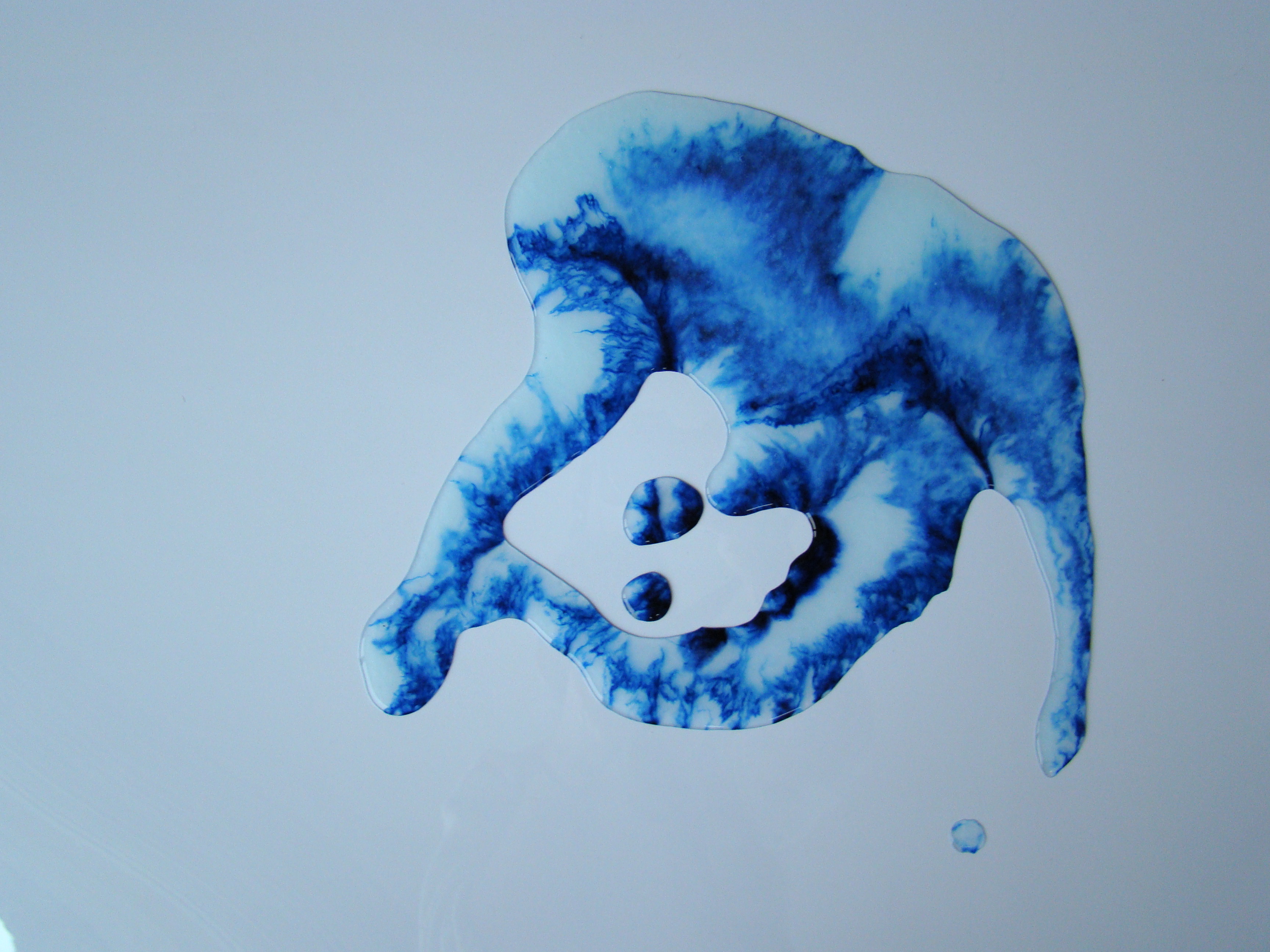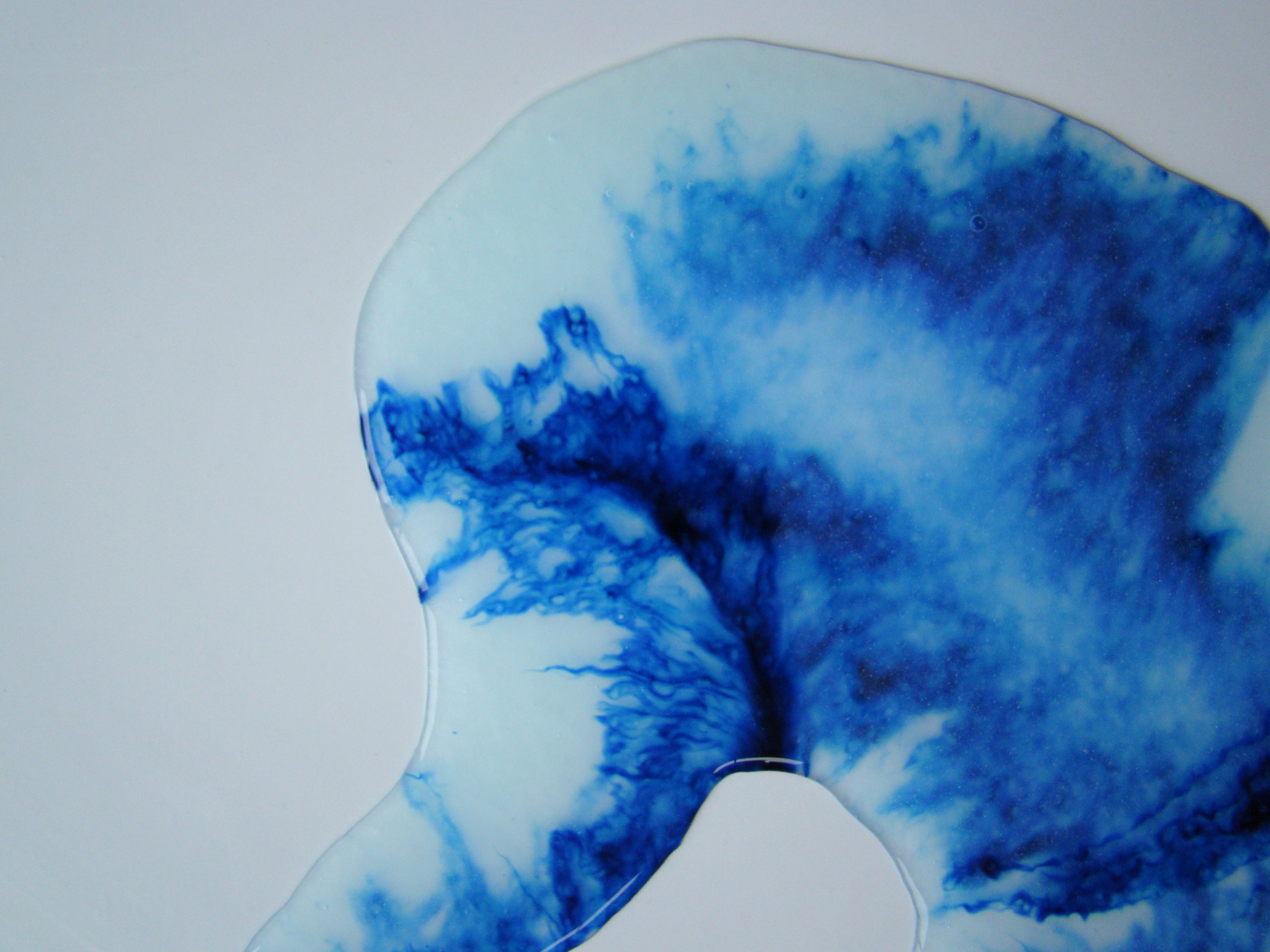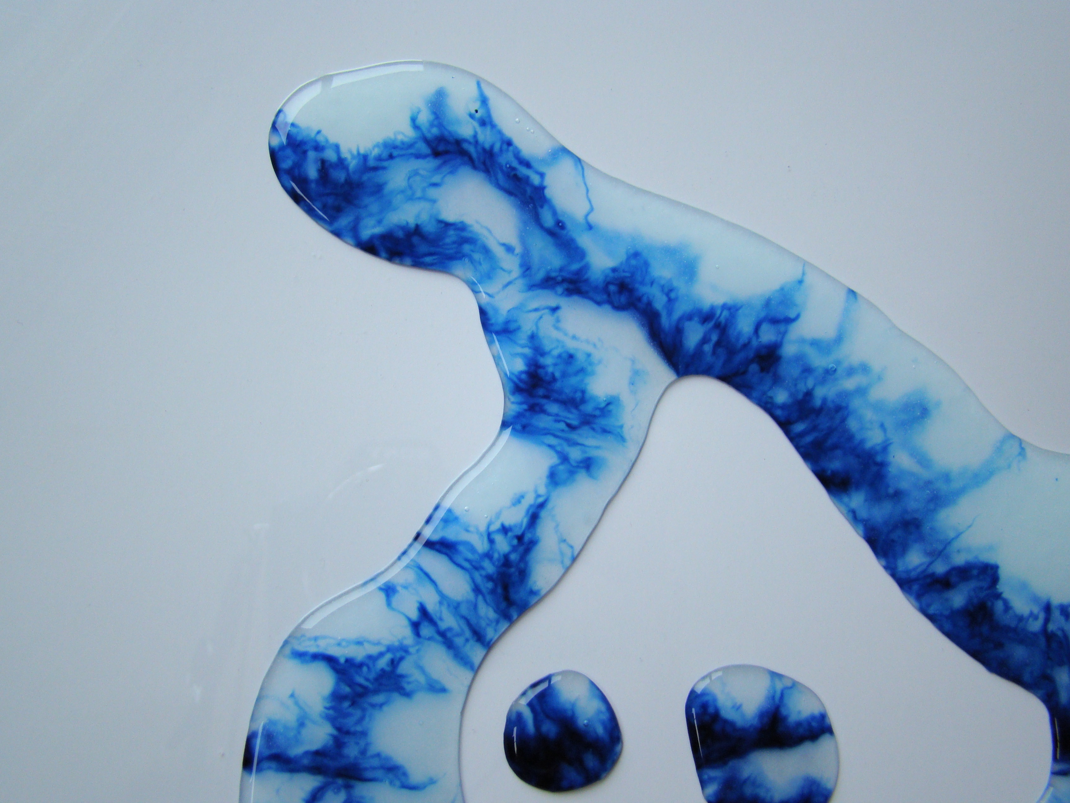 sculptures à base de colle liquide vinyle, encre bleue, plaque de plexiglas et papier – 2024 – formats multiples