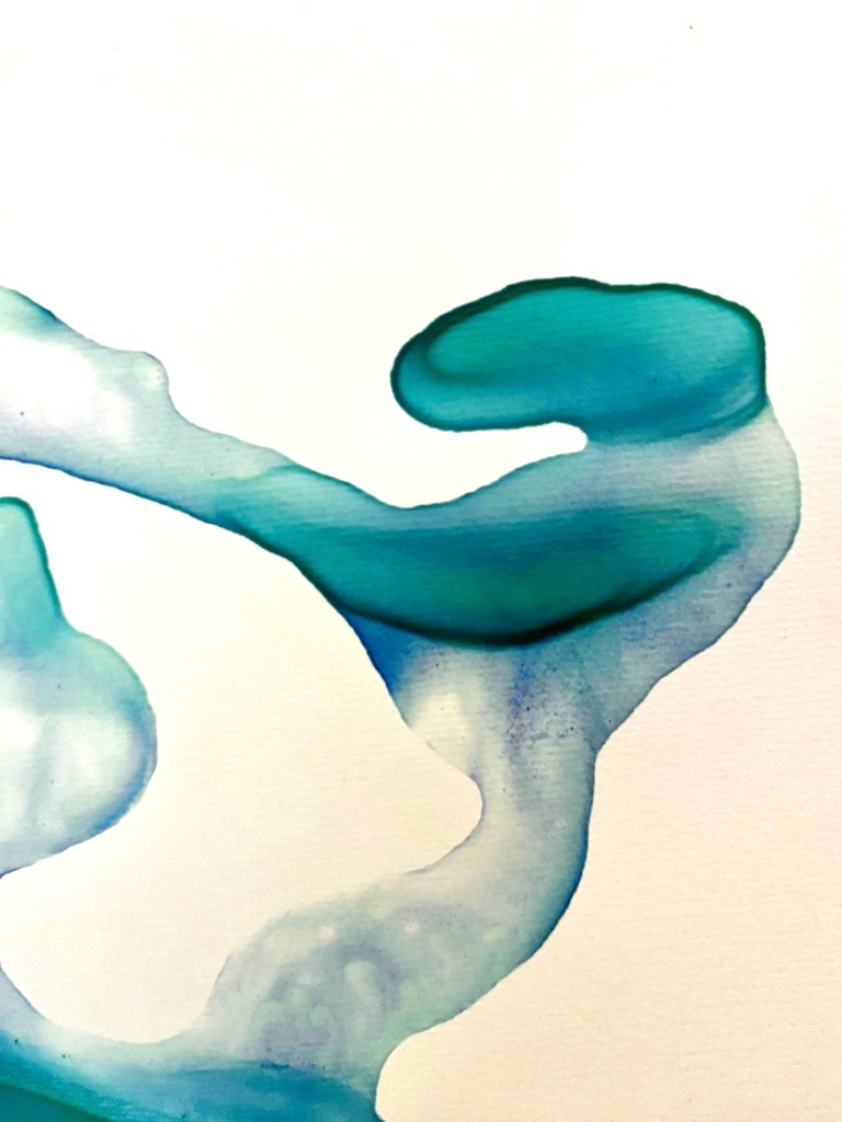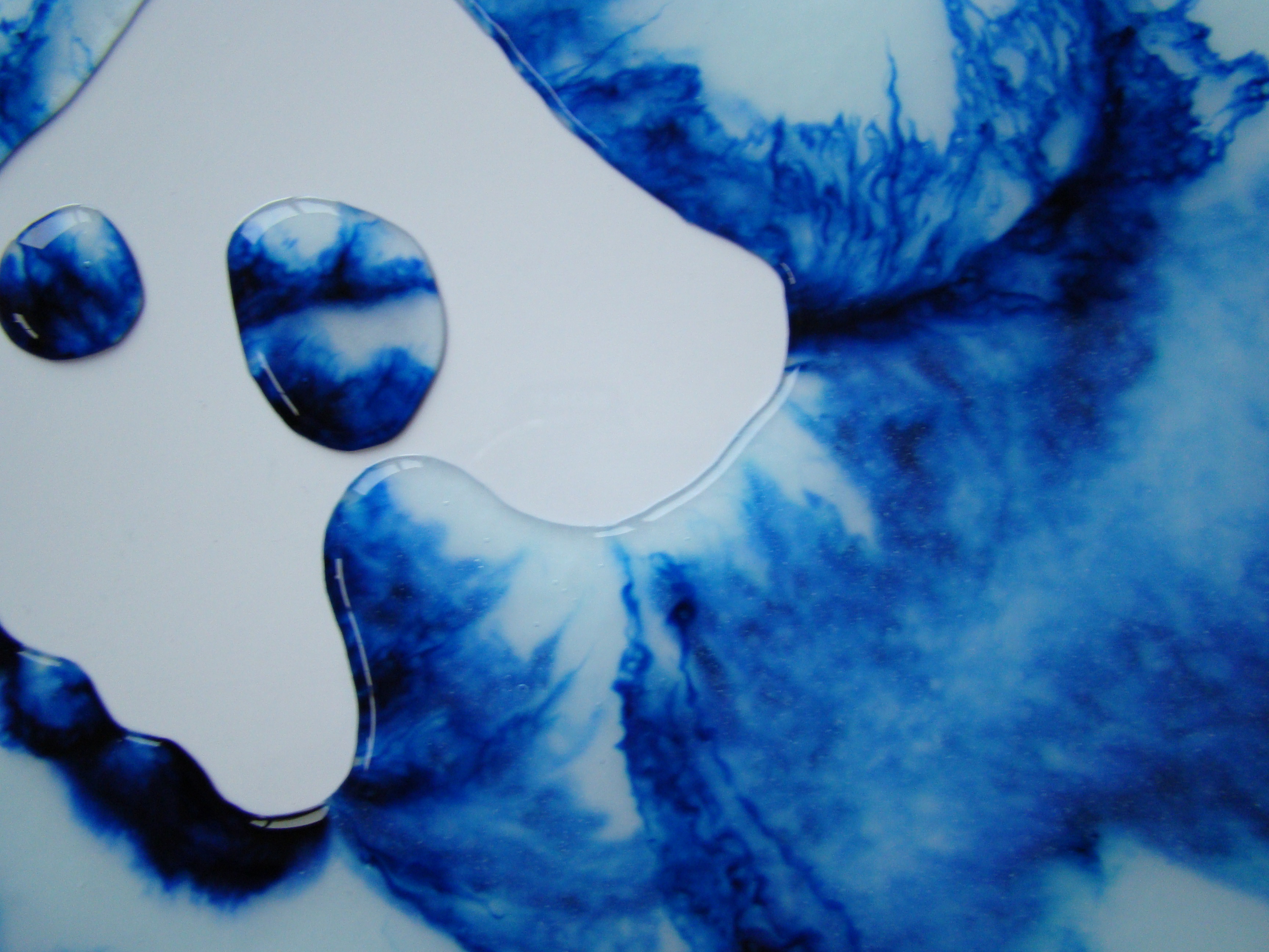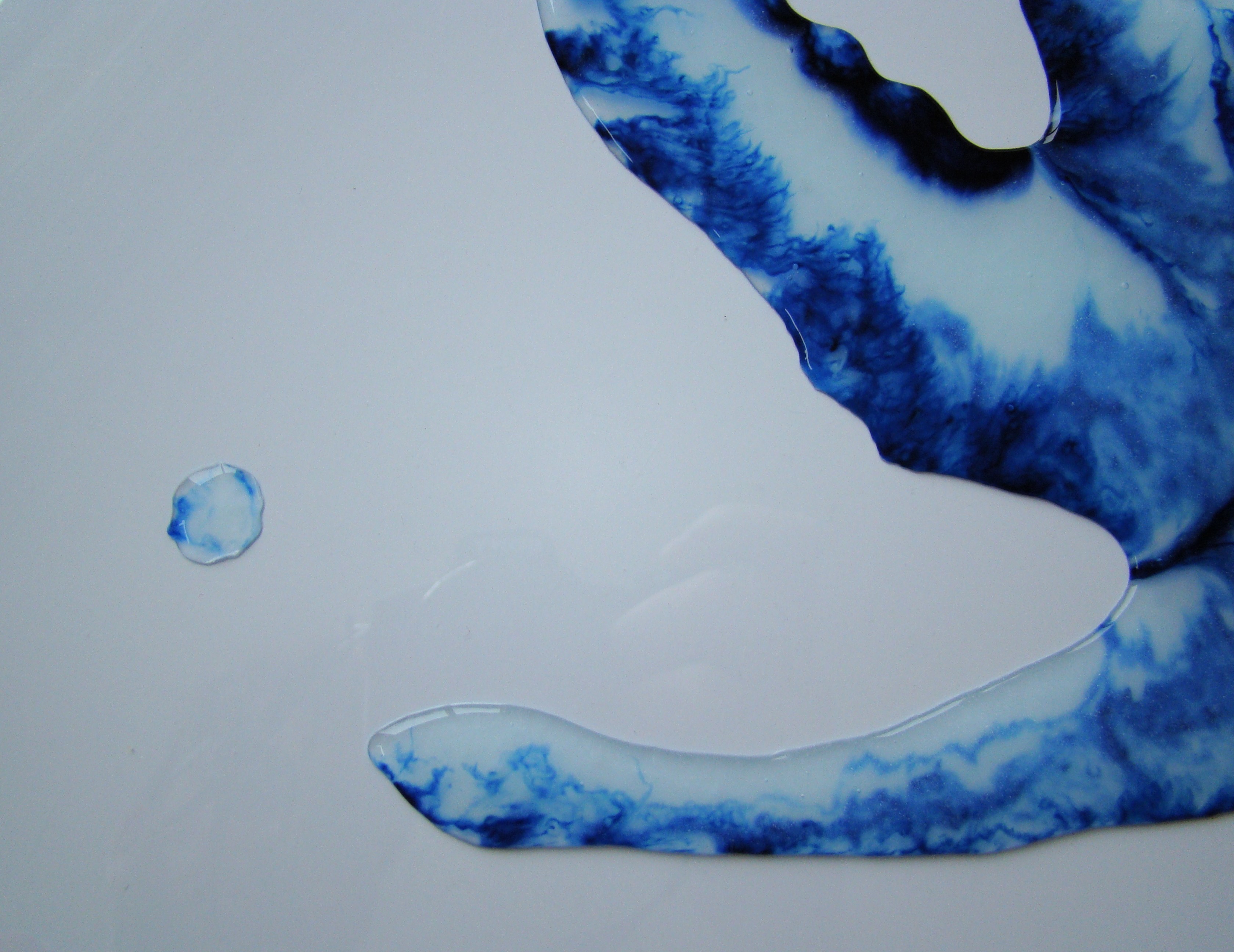 sculptures à base de colle liquide vinyle, encre bleue, plaque de plexiglas et papier – 2024 – formats multiples