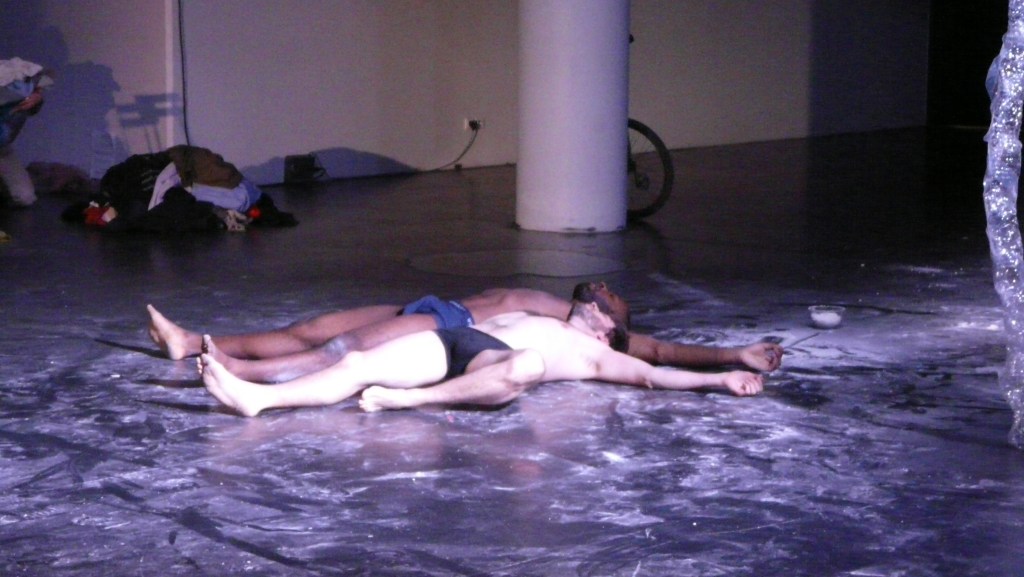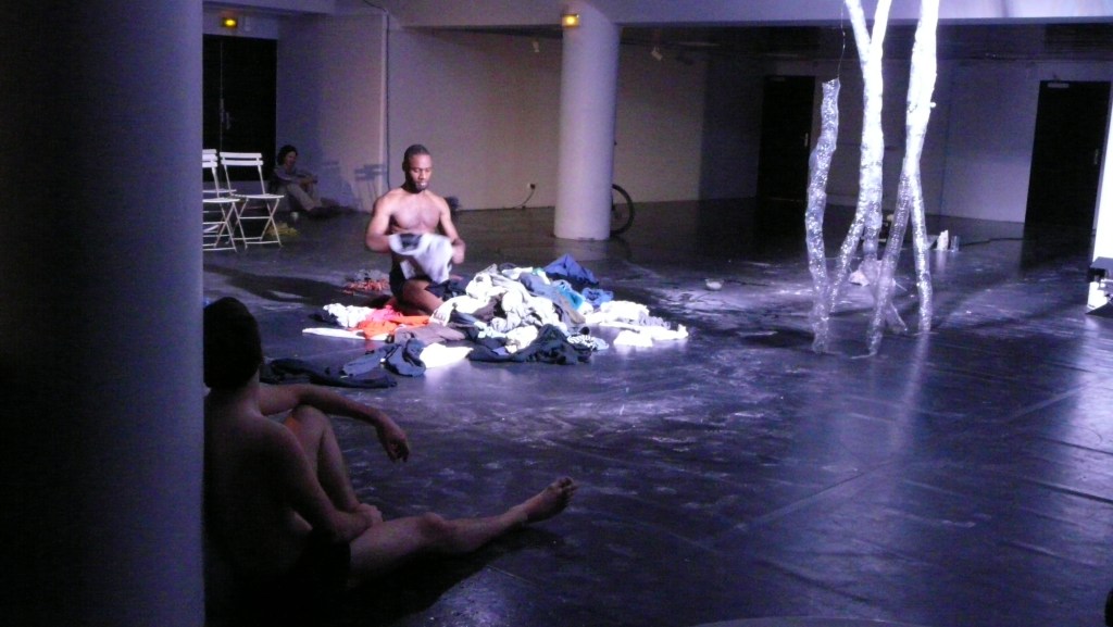 Invité à participer à la pièce de théâtre La 7eme Symphonie par Sébastien Kuntzman, j’ai répondu par cette performance inspirée de la maïeutique, avec la mise au point d’un triptyque accouplement/gestation/accouchement. Les participants étaient invités à s’ébattre, s’habiller/se déshabiller de vêtements mis à disposition et enfin à accoucher individuellement et collectivement dans un mélange et échange des rôles supposés de chacun chacune.